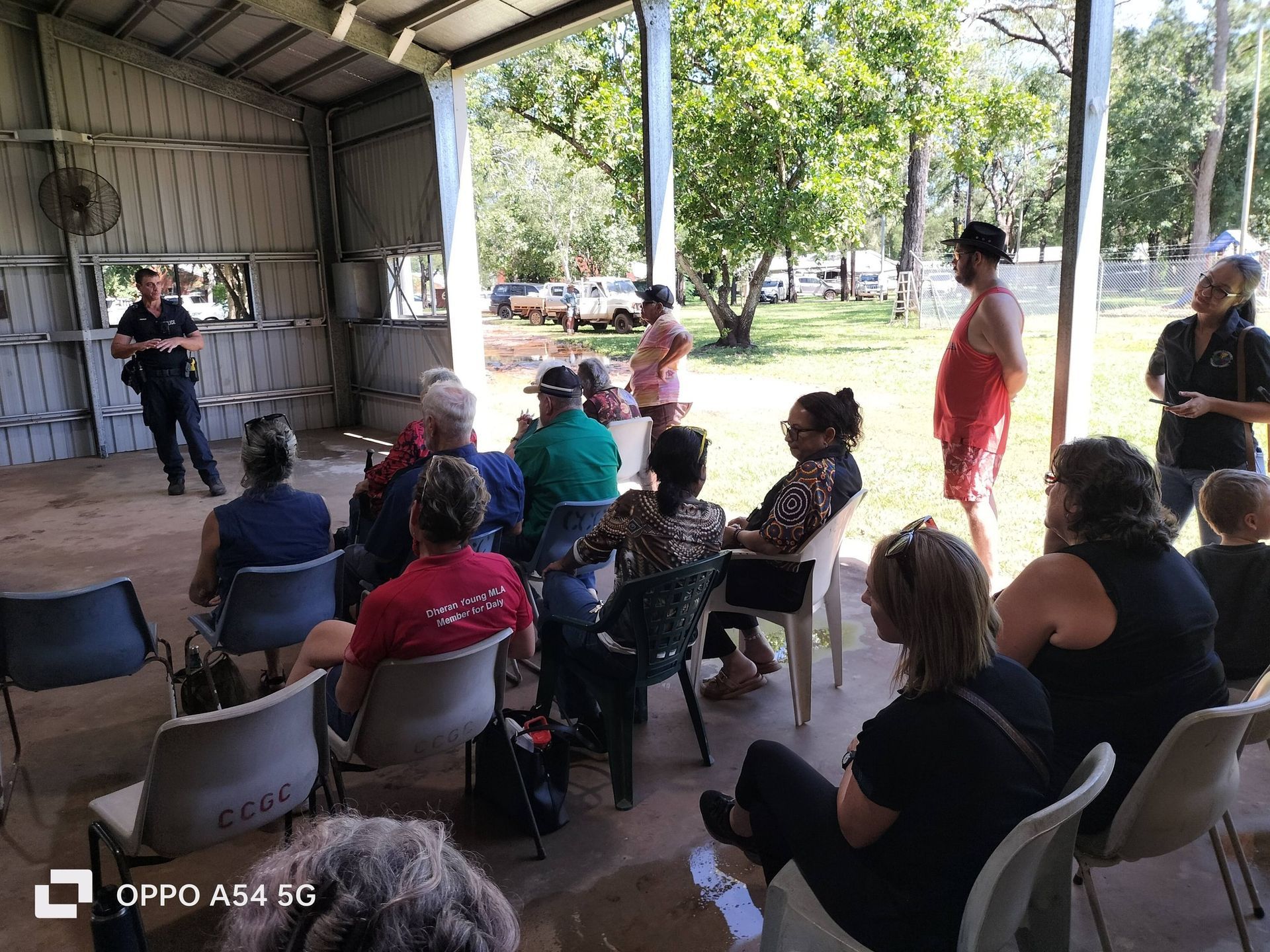 Batchelor residents gathered Thursday morning for a community meeting regarding the Daly River and Palumpa evacuee transition to the town.